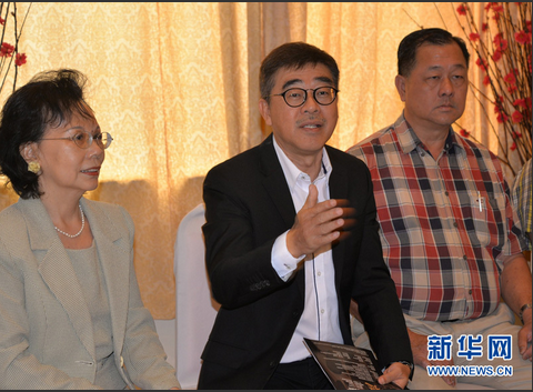 马来西亚-中国文化艺术协会工委会主席叶啸(中)介绍南国菩提在马来西亚国家文化宫演出的细节。(王大玮摄)