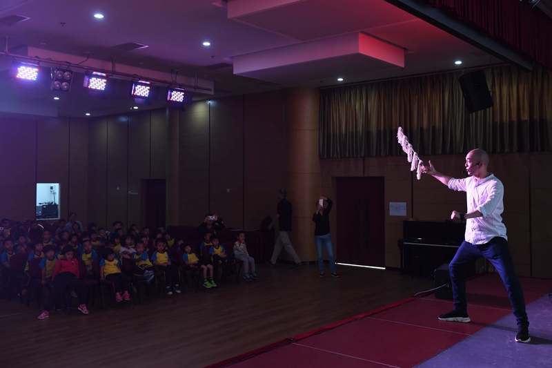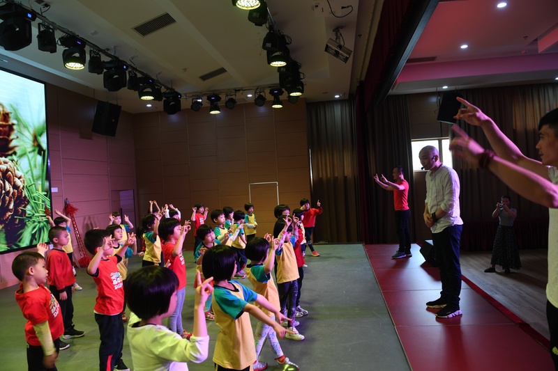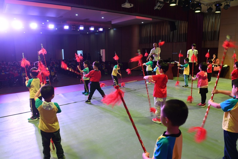 活动中,吴泽东老师向小朋友们简单介绍了粤剧的基本知识并亲自作示范解释,还专门为小朋友播放了一段粤剧《真假美猴王》视频片段,视频中“孙悟空”的形象深深吸引着小朋友,他们看得入了迷,纷纷举手要求上台体验一把。在我院老师的指导下,小朋友们似模似样地耍起了枪花,举起了“兰花手”,近距离过了把粤剧瘾!孩子们的热烈反应和积极互动,也让我们感受到了粤剧的魅力和传承粤剧的信心。