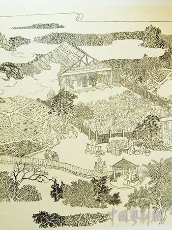 手绘当年“乐群英班”演出的戏棚