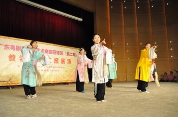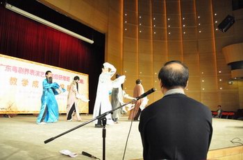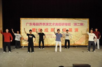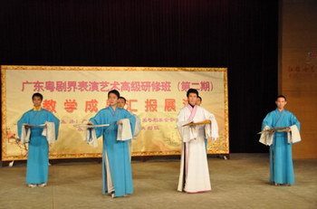 “广东粤剧界表演艺术高级研修班”(第二期)于3月18日开学,经过十多天的学习,在即将圆满结束之际,今日(3月29日)举行了教学成果汇报展演,展示本期“高研班”的学习成果。省文化厅厅长方健宏、广东省政协副秘书长邵忠、以及粤剧大师红线女、著名粤剧表演艺术家陈小汉等领导和嘉宾出席观看了展演。