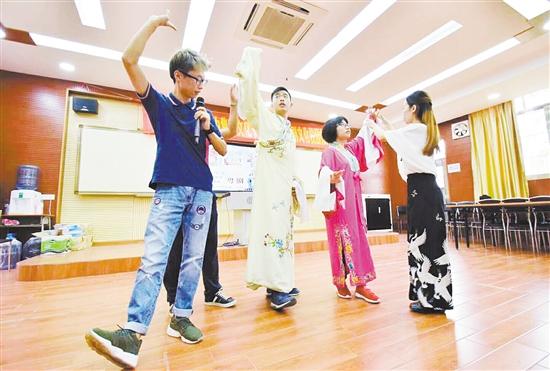 江门市粤剧传习所青年演员与学生互动。