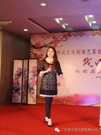 4月17日,广东音乐曲艺团受邀在增城进行庆祝增城区戏剧曲艺家协会第一届代表大会演出活动。当日,该团著名粤曲演唱艺术家、国家一级演员梁玉嵘,优秀青年演员廖绮、林婷婷、郑霭玉、梁洁华、李娜等登台献艺,奉上《西楼恨》、《风流司马俏文君》、《赵子龙催归》、《穆桂英挂帅》、《别馆盟心》等多首经典粤曲,赢得在场嘉宾掌声阵阵、一片喝彩。此次庆祝演出活动也有效促进了增城区戏剧曲艺家协会会员间的沟通与交流,有利于进一步提升区域戏剧曲艺事业的发展。