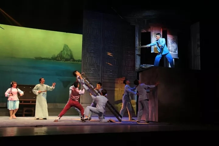 值得一提的是,《烟》剧的舞台呈现在简约中透着唯美,完全没有时下戏曲舞台抛金撒银的“大制作”弊病。当剧中青年画家杨泽才挥毫画梅时,舞队以梅花的造型出现,寓意梅花怒放,既巧妙表现了剧情,也以唯美的艺术形式使观众惊艳。还有杨泽才、苏月梅在逃难途中遭遇风沙的表演,大量采用传统戏曲的身段动作,全剧唱腔也透着浓浓的粤味,凡此种种,都足以说明:该剧虽为新编戏,但却是一部不从众、不媚俗,努力追求戏曲化、粤剧化的“高雅”之作、诚意之作。