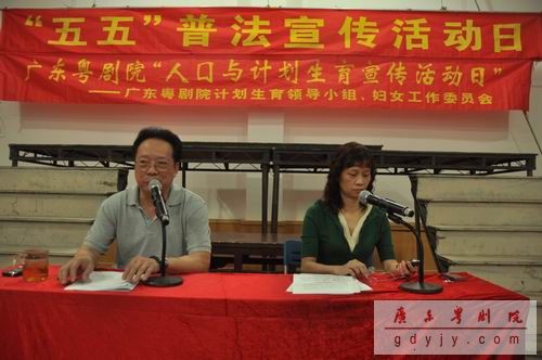 广东粤剧艺术大剧院党委书记郑梓涛在会上给全院职工作了题为《做一个遵章守法的公民》的报告。他用生动的例子深入浅出地讲述了作为一个中国公民学法、守法的重要性。他强调法律是一切社会政治生活的调控器,没有人可以逃避法律的管辖。最后,广东粤剧院副院长陈列东提出,当今是资讯发达的社会,此为我们提供良好的学习条件,我们应努力提升个人文化素养,做一个遵纪守法的人。
