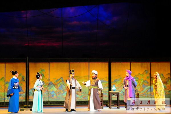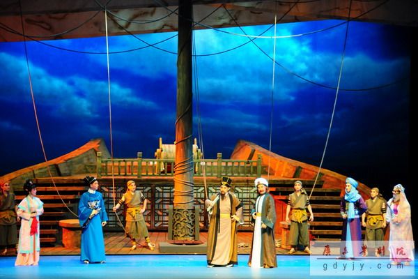 粤剧《南海一号》描写的是南宋高宗时代,广州航海通商大户李大用、李六哥父子,响应朝廷远航市舶、再兴大宋之号召,修造大船“南海号”,载着富有异国特色的改良陶瓷,远渡波斯。全剧以李六哥与李大用两代人的观念冲突为主线,突出了六哥敢为人先、革新陶瓷、富强图存的宏志。而六哥与表妹林花、波斯姑娘古丽之间凄婉、纠结的爱情,波斯青年商人哈立德的从中作梗,更是制造出全剧一个又一个的高潮。“南海号”与船中人的命运最终因风暴来袭而淹没于汪洋大海中。
