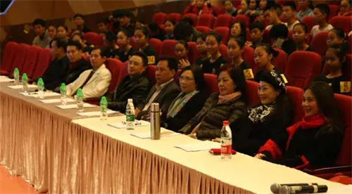 1月19日,该学院2014级粤剧表演班中专生跟其他专业学生一样要进行期末专业考试。但不同的是,他们的考场不是在平时的练功房,而是在小剧场;考官也不是学校考试巡查组老师,而是一批大腕明星,中国戏曲学院教授、研究生导师周龙,广东省文联兼职副主席、剧协主席、一级演员倪惠英,一级演员蒋文端、李淑勤、彭庆华,粤曲平喉演唱家何萍,粤剧音乐家崔德銮等悉数出席,学院党政班子领导韩安贵、李永祥、李宗元、黄声雷也出现在考评席上。