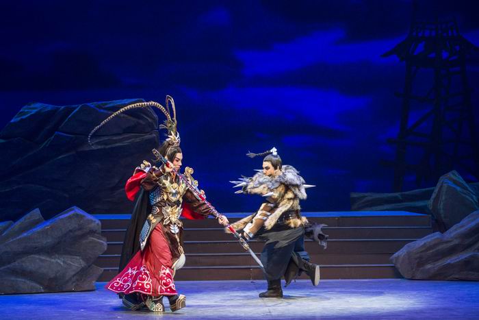 酷炫网游混搭传统粤剧,唱做念打还原剑侠江湖,威亚“轻功”、裸眼3D效果、“5.1”环绕立体声轮番上阵,实现视听一体的动感享受……以上所说的正是广东粤剧院与金山软件西山居工作室携手打造的“跨次元”诚意力作——粤剧《决战天策府》。该剧于今年1月24-25日在广东粤剧艺术中心剧场顺利进行首演,赢得众多网游粉丝和粤剧观众的好评。剧组趁热打铁,在历经半年的酝酿和碰撞后,再度推出“升级版”。