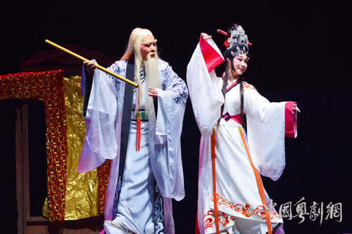 剧中,欧凯明饰演的赵佗细腻传神,人物个性刚柔并济,从志得意满的壮年演到鹤骨霜髯的暮年,将赵佗戎马半生、英雄盖世又顾全大局的气质,及其复杂曲折的人生经历细致展现给观众。崔玉梅饰演的百越民女金笛刚强果敢、善良大义,既能为了给姐姐复仇而视死如归,又能为了百越人民免于战乱而放下仇恨。二人的表演相得益彰,精彩再现了岭南历史与人文风物,尽展粤剧名家的艺术风采。