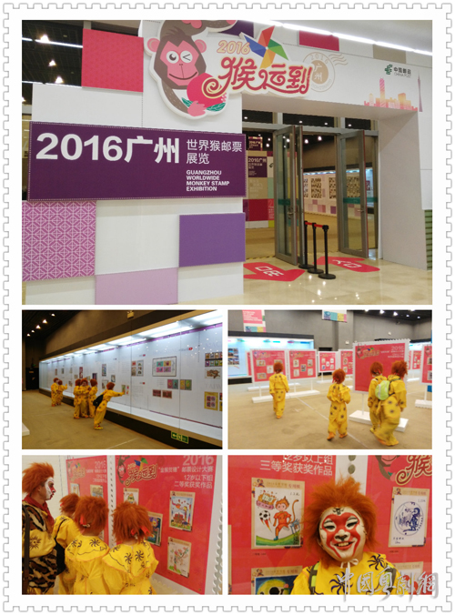 活动后叶校长马老师还带着猴子们参观了广州图书馆负一层展厅“2016世界猴邮票展览”,看到了世界各国的猴年邮票,也观赏了参加小孩的猴年邮票获奖设计,大开眼界。