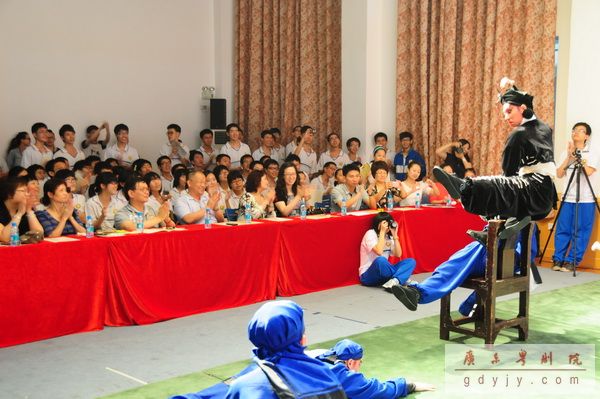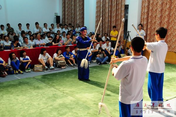 在参观完粤剧演员的化妆、服装后,一众广雅师生又欣赏了由我院优秀青年演员曾小敏、彭庆华、王燕飞、文汝清、黄春强、龚洁影等演绎的经典折子戏——《活捉张三郎》、《帝女花之“香夭”》、《武松大闹狮子楼》,学子们看得津津有味,场内的掌声与喝彩不断。在得知广雅学生曾在维亚纳音乐比赛中以《荔枝颂》摘取金奖后,广东粤剧院副院长、“中国戏剧奖·梅花表演奖”得主、国家一级演员曹秀琴亦即兴献声,一曲现场版《荔枝颂》,引动全场迭起高潮。