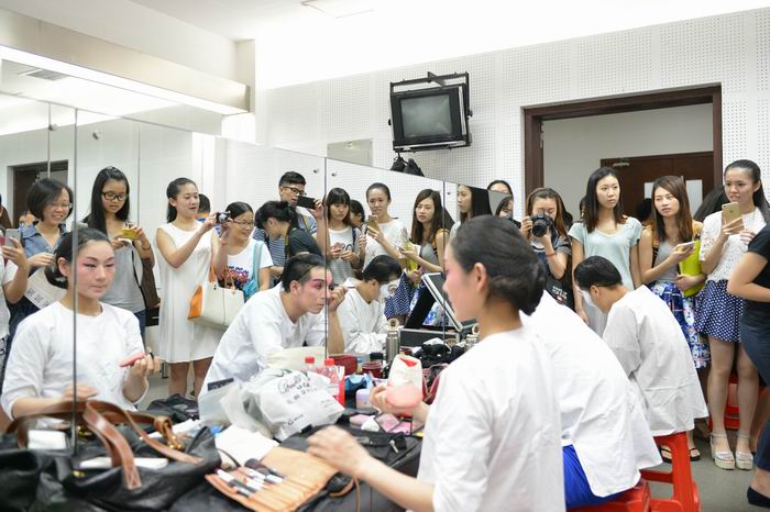 学生走进后台,与演员、戏服、道具零距离接触
