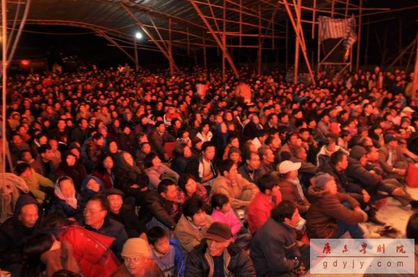 昨晚(年初二),广东粤剧院一团春班第二站移师湛江市乾塘镇,一出《唐宫香梦证前盟》征服了在场三千多名观众。新年春节持续低温,昨晚飘起细雨,但丝毫没有影响观众的热情。华丽的服饰与精美的舞美制作给村民们带来了强烈的视觉冲击,引起轰动。