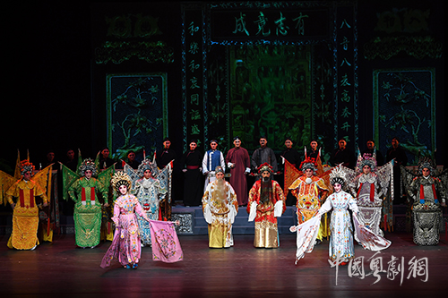 而剧末的《六国大封相》元素呈现颇具巧妙新意,以《六国大封相》昭示八和会馆将带领粤剧界同仁共襄盛举缔造辉煌,全行业共同走向充满希望的未来,也原汁原味展示了传统的粤剧排场和经典“戏台官话”古腔,对了解早期粤剧历史的观众来说非常值得回味。《六国大封相》可谓早期粤剧的象征符号,以这部无论圈内外人士都相对熟悉的剧目为引子,激活人们产生探究粤剧种种往事的求知欲望。