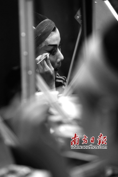 2009年深圳粤剧团恢复演出。图为演出前演员在化装。资料图片