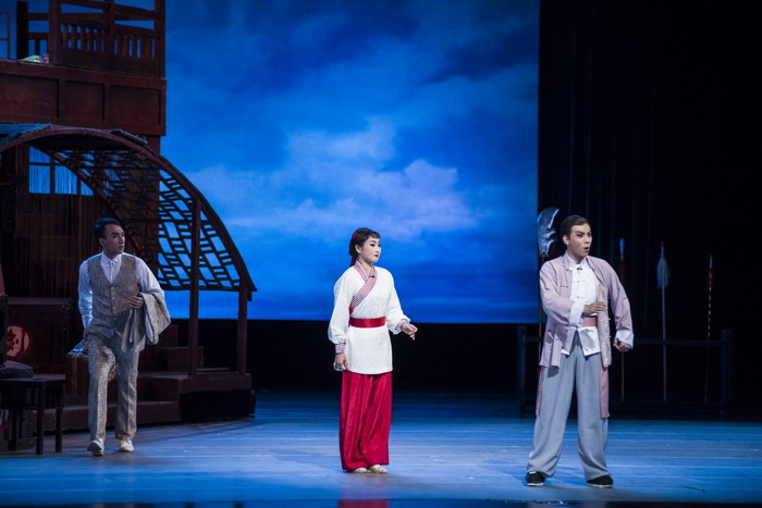 梧州,水绿城乡,三江总汇,粤剧文化浓厚的历史名城。辛亥革命与抗日战争期间,当地艺人募捐义演,马师曾、薛觉先、白驹荣、红线女等粤剧表演艺术家曾多次到梧州演出。延续至今,梧州已成为两广地区,粤剧文化交流的重要枢纽。广东粤剧院于国庆期间在鸳鸯江畔(梧州桂江与浔江)上演一出以红船艺人用血捍卫民族大义、抗日救国的剧目,别具意义。