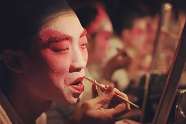 “开面”的最后一步是,依据不同行当的特点,在演员脸上涂抹不同颜色的油彩,再用大红油彩勾画上下嘴唇的轮廓。