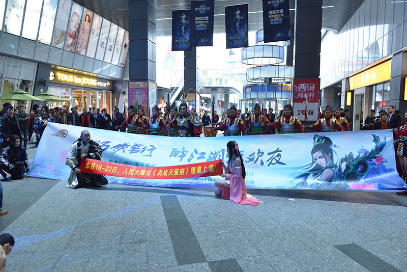 2015年11月19日,广东粤剧院粤剧《决战天策府》“天策大军”惊现上海近铁城市广场,一场“粤剧快闪”穿越于上海闹市之中。