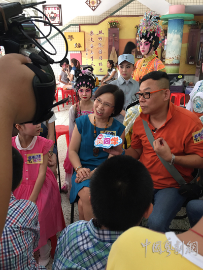 倪惠英给小红豆们解答粤剧相关问题(中国粤剧网记者摄)