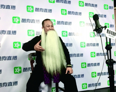 国家级非遗传承人、广东省海丰县西秦戏剧团团长吕维平在酷狗直播中展示髯口功