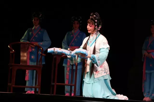 不仅因为红腔的娇柔,以及红线女老师塑造的形象眉目流转间的灵动,更因为红线女老师在日常生活中的个人魅力,她对女性自身多面的“美”的追求,也投射在她的艺术创作中。昨晚的《搜书院》,苏春梅用细腻传神的表演,将少女翠莲表演得恰到好处。无论是刚出场受到小姐训斥背后娇嗔的她,还是见到张逸民害羞得手足无措的她,抑或是书房中与张生两心相印的她,从行腔和表演上都少女感炸裂。对于翠莲这个角色来说,她是镇台府上的婢女,身份低微,如果用戏曲行当来划分,原本该属于小旦。作为主角,翠莲身上的故事丰富多彩,其身世堪怜,却是个“硬骨头”的女子,被镇台冤枉时她不惧权威出逃,与张生相爱时也大胆地表露真情。在剧中,翠莲从一开始放风筝的小丫鬟,到狱中出逃混入书院的奇女子,在表演上还是需要演员掌握多种层次的转变。在放风筝一场和与张生谈情说爱的场景中,苏春梅表现了十足的少女情态,娇俏可爱,而在狱中倾诉自己身世与冤屈的时候,又要有正印花旦的沉稳。可以说,苏春梅在这些不同场景人物形象的转换上,是完成得很不错的,她行当表演的分寸拿捏得也很到位。