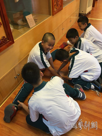 在不断的参赛过程中,家熙同学的花脸表演技巧日趋娴熟,渐入佳境。随着对《艳阳楼》高登一角的熟悉,他却渐渐高兴不起来了。为什么呢?原来他觉得高登是恶霸,不是个好人,他不喜欢!尽管他也会演《沙家浜》《十八青松》这些戏,但是大家偏偏看他演花脸,喜欢看他演《艳阳楼》。他说,以前刚学觉得很威风,现在觉得他不是英雄耍什么威风呢!尤其来到南海中学,同学们学过“粤剧花脸”一课之后,都知道涂白脸的是坏人。有时小伙伴聊天提起他演的是坏人,他都觉得很不好意思。他鼓起肉肉的小脸叹了口气说:“真是超郁闷呢!我要好好练功,让师父教我演个大花脸真英雄!”于是他更加勤奋练习,特别是腿功,还让同学帮忙推压,丝毫不敢懈怠。