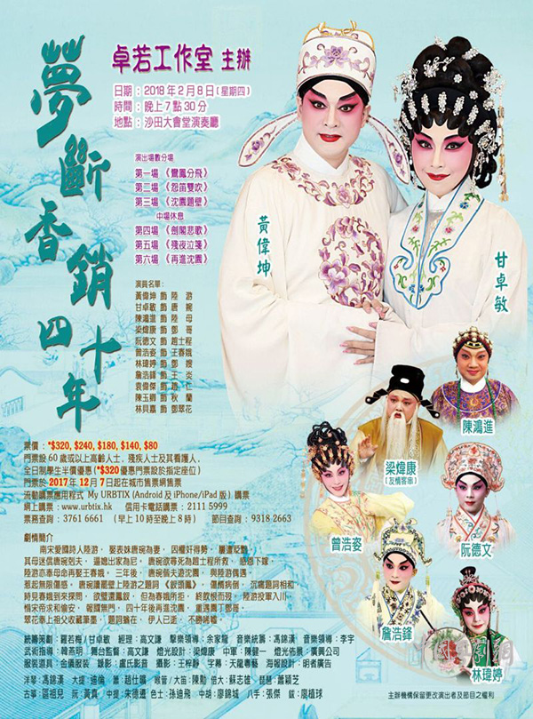 经典粤剧《梦断香销四十年》由粤剧名伶黄伟坤、甘卓敏担纲,实力演员陈鸿进、梁炜康、阮德文等助演,故事情节动人,欢迎广大戏迷多多捧场!