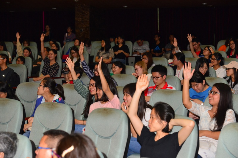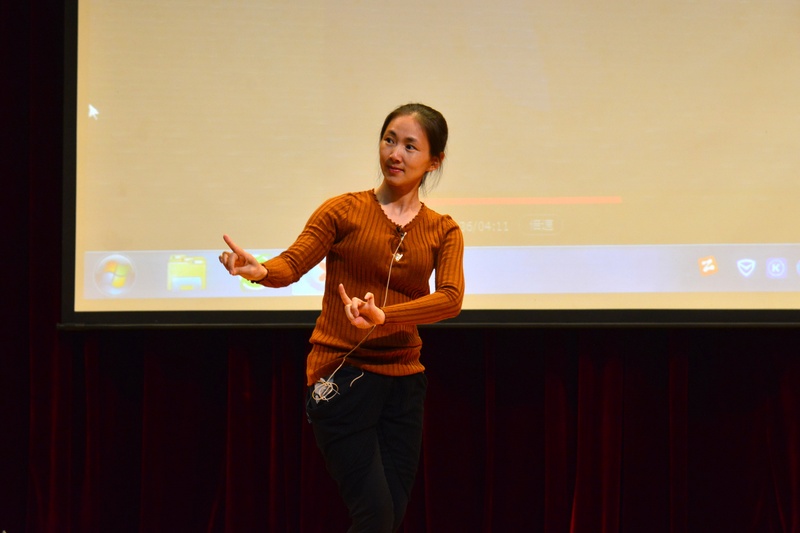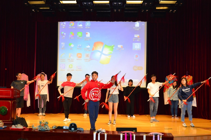 互动环节掀起了讲座的一个小高潮,学生们争相举手,踊跃参与,上台学习把子功、水袖功、虚拟表演和基本表演身段。