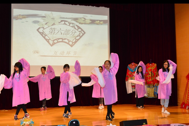 邱小娜老师通过轻松生动的表达方式,向师生们讲解了粤剧的起源、特点、行当、头饰、服装等等相关知识,通过视频来展示传统粤剧和创新粤剧的特点与差异。