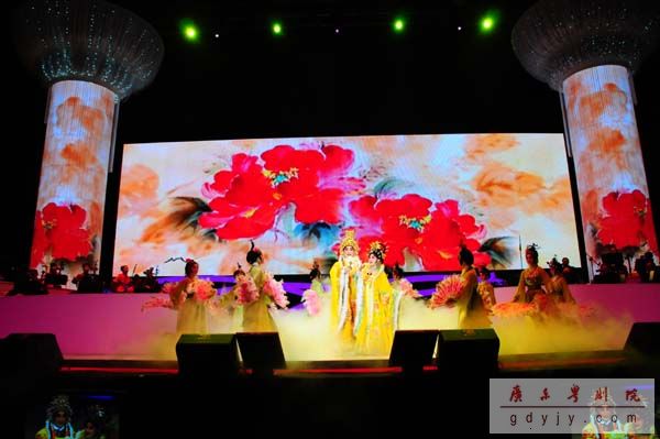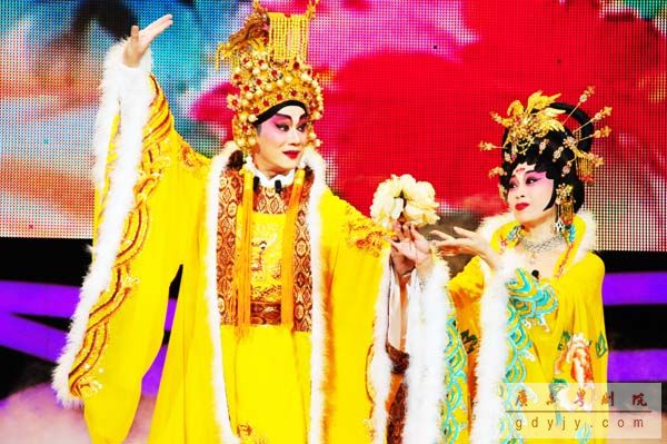 我院粤剧名家丁凡、蒋文端参加了30日晚的演出,在晚会上演出了《唐宫香梦证前盟之“牡丹颂”》,精彩的演唱、华丽的服饰、优美的舞蹈受到香港观众的热烈追捧。我院青年演员演出的、充分展现粤剧南派风格的开场式也令晚会增色不少。