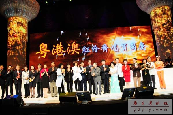 金秋十月庆华诞,南国红豆舞香江。广东省文化厅、香港特别行政区民政事务局和澳门特别行政区文化局联合主办的“粤港澳红伶齐唱贺国庆粤曲演唱会”于昨晚(10月30日)在红磡香港体育馆举行首场演出,这是三地共同为庆祝新中国成立60周年,同时也是为庆祝粤剧成功列入联合国教科文组织《人类非物质文化遗产代表作名录》而举行的庆祝活动。本次演出充分展示了粤港澳文化交流合作的重要成果。<?xml:namespace prefix = o ns = "urn:schemas-microsoft-com:office:office" />