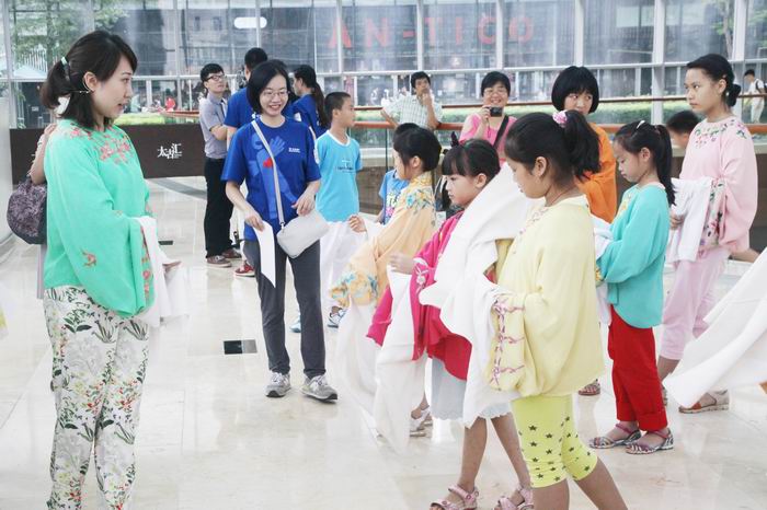 6月27日,我院文化志愿者、优秀青年演员文汝清、李嘉宜、李源斌再次受广州少年宫的邀请,来到广州太古汇举办“粤剧课堂”活动。据了解,此次活动是由广州少年宫携手太古汇主办的少年暑假系列活动——广府文化体验工作坊系列活动之一。此次活动,约50位小朋友、家长参与。