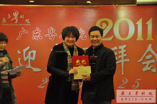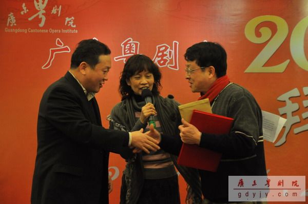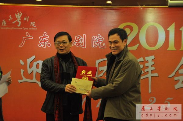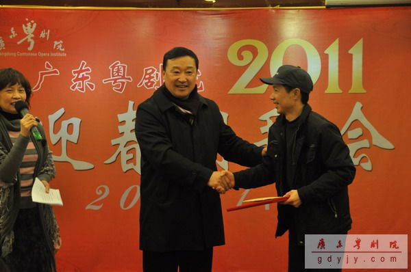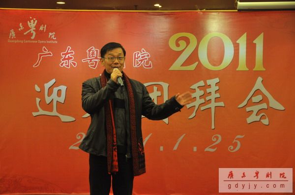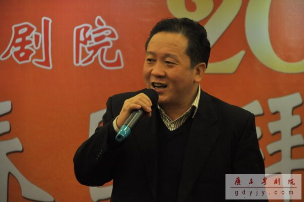 宴会开始,我院丁凡院长作新年贺词,他说,“过去的一年中,我院超额完成了330场次的演出,收入再创新高,达到‘出人、出戏、出精品’的辉煌成绩。今年的春班演出台期更是超越去年,达到78场之多。现今粤剧已经成为建设广东文化强省的十大名片之一,在下一年的工作,我们要继续努力,再创辉煌。”