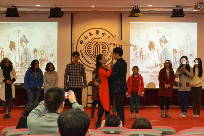 2015年12月8日晚7时30分,广东粤剧院新编传奇粤剧《白蛇传·情》艺术沙龙讲座于中山大学中文堂105课室举行。由广东省非物质文化遗产保护中心、中山大学中国非物质文化遗产研究中心、广东粤剧院主办的“粤剧校园行——新编粤剧《白蛇传·情》校园巡演项目”正式启动。