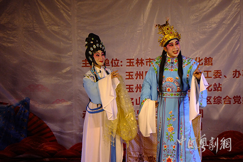 广西玉林粤剧名家文杰(右),唐梅(左)尽情演出经典折子戏《晴雯补裘》