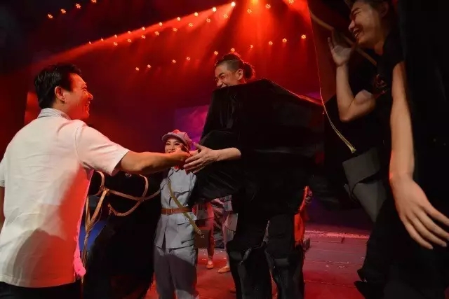 A:导演组认为马是剧中亮点之一,导演组成员受到英国话剧《战马》中马偶的启发,提出用“真马”呈现。总导演王佳纳表示:“仅仅一条马鞭不能满足剧中阿金和大黑青之间的感情交代,因此我的团队创造出全新的表现手段,用狮子舞的方式,配合跑酷(全球的时尚极限运动)作为马脚,两个人表现一匹活生生的马。这匹活生生的马在舞台上活灵活现,增添了很多趣味。”