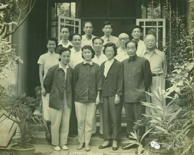 陈笑风(后左一)与马师曾(前右一)、红线女(前左二)、文觉非(二排左二)、郎筠玉(前左一)等合照