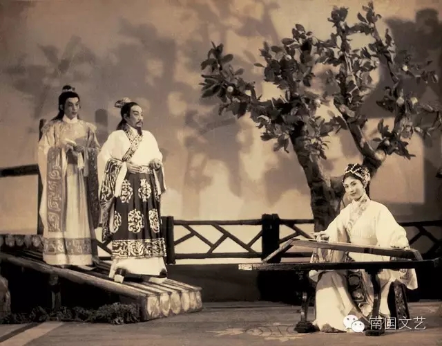 马师僧(中)、红线女、陈笑风(左)合作演出《屈原》