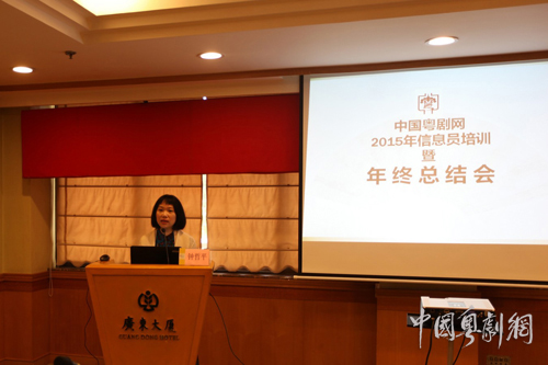 广州文研院副院长、中国粤剧网主编郭伟生对粤剧网一年工作进行了总结。过去的一年是粤剧网改版后创新改革的成长关键一年。粤剧网在原来良好的基础上,不断发展粤剧网委员单位范围、扩大信息员队伍、开通中国粤剧网微信公众号、不断丰富粤剧网内容,使得中国粤剧网在信息更新数量、文章质量以及覆盖面上都取了长远的进步。中国粤剧网2015年的总浏览量与2014年同期相比,增长了58.48%。由于微信公众号及各种其他宣传带动,独立访客量也迅速增长,与2014年同期相比,增长了97.82%。目前粤剧网委员单位不但走出了广州,还走出了广东省,未来还将向港澳以及海外地区发展,从而进一步扩大中国粤剧网的影响力。