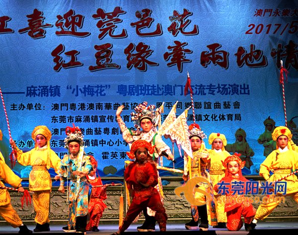 5月11日,麻涌镇中心小学“小梅花”粤剧班赴澳门交流专场演出取得圆满成功,充分展示了东莞粤剧新生代的风采。