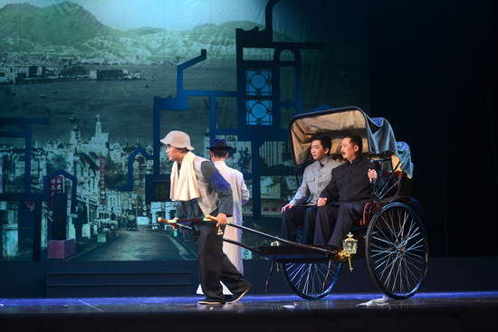陈强(右一)饰演李济深先生。蒙绍松摄