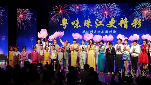 由广东广播电视台珠江频道主办的“珠江频道2015《珠江粤味更精彩》(广州站)大型推广晚会”于7月3日在广州文化公园中心台隆重拉开帷幕,荔湾区青少年宫艺术学校二、三年级粤剧班受邀参加此次盛会,表演节目《抢唢呐》、《月光光》;《抢唢呐》曾荣获2015年第六届广东省少儿戏曲小梅花荟萃金花十佳称号,指导老师:梁建忠,黎家燕;学生:梁峻烨 男 9岁 饰演董代;何喆雯 女 9岁 饰演董大嫂。同台演出的还有国家一级演员冯刚毅、卢海潮、黄伟香老师等。整场晚会既有时尚气息又充满传统粤味。