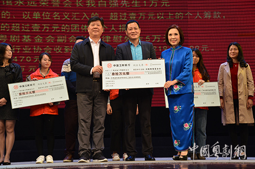 广东粤剧促进会会长、广州市振兴粤剧基金会副理事长倪惠英,广州粤剧院有限公司董事长、振兴粤剧基金会副理事长余勇代表主办单位接受捐赠支票
