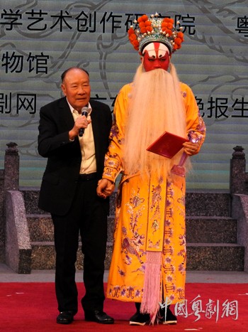 广州市老市长黎子流为获得“红豆杯”大学生粤剧粤曲网络大赛金奖节目颁奖