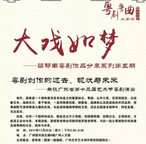 但是,任何一个剧种的成长,都会走过不少弯路,伴随着阵痛。回顾过去,正视现状,才能真正走向未来。本期讲座,国家一级编剧梁郁南老师会同广州青年剧评团的罗丽老师等成员,与你一起从粤剧创作的角度走进粤剧的过去、现状与未来。