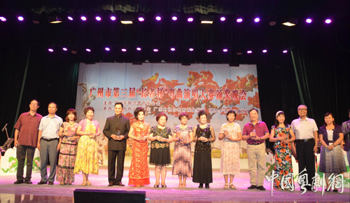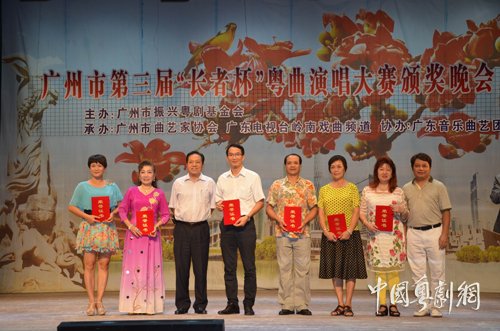 广州市第三届“长者杯”粤曲演唱大赛9月28日在广州文化公园中心台举行颁奖晚会。原广州市市长、广州市振兴粤剧基金会会长黎子流(伉俪)、广东省曲艺家协会副主席兼秘书长肖小青、广州市文联协会部部长梁晓明、广州市曲艺家协会常务副主席、广东音乐曲艺团团长黄润根、广州市曲艺家协会主席、国家一级演员何萍、广州正永投资有限公司财务总监雷伟斌、广州市曲艺家协会名誉主席、著名撰曲家沈瑞和、广州市曲艺家协会名誉主席、著名音乐家孔庆炎、广州市曲艺家协会名誉主席陈桂兰、广州市曲艺家协会副主席陈树荣、广州市曲艺家协会副主席兼秘书长郑德强等有关领导、嘉宾出席了颁奖晚会。