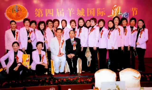 带领学生赴广州参加第四届羊城国际粤剧节,与师父陈小汉(黑衣者)合影