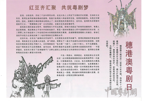 2015年11月29日,恰逢是穗港澳粤剧日。从2003年起穗港澳粤剧日确立至今已持续了十几年。为了庆祝这个特殊的日子,29日当晚在文化公园举行了“南国小红豆”青少年粤曲汇演颁奖暨穗港澳粤剧日展演活动。