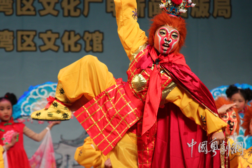 大南路小学“南悦红豆”粤剧社的豆丁们,以新创粤剧短剧《金猴献瑞》还有经典节目《唐伯虎点秋香》参加了这次“南国小红豆”青少年粤曲粤剧比赛,并一举夺得了金奖和铜奖。而《金猴献瑞》则以金奖优秀节目的身份在这次节目展演活动中担任压轴节目展演。英姿煞爽的猴王、调皮可爱的猴子、还有美丽飘逸的仙女,精彩的演出获得了现场观众的阵阵喝彩声。演出结束后小豆丁们还接受了广州少儿频道《同学》栏目的采访。