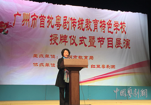 12月3日下午,在南方戏院广州市教育局就对首批粤剧传统教育特色学校进行授牌,全市共有15间中小学获得此荣誉,广州市南海中学是仅有的两间中学之一。梁春玲副校长在现场接受了牌匾授予,并作为特色学校代表在仪式上发言。