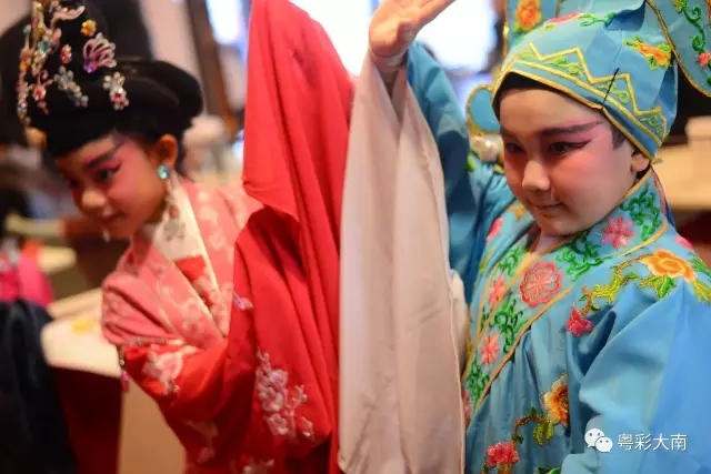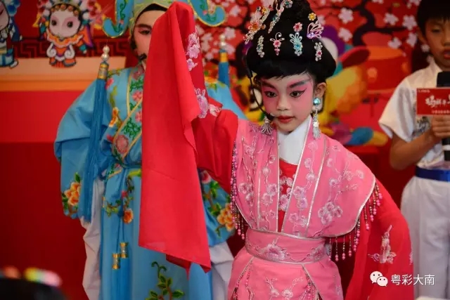 “小红豆”伍乐政,吴咏霖,曹至德,陈蕴瑜虽然今年才9岁,但通过学校粤剧班的学习已基本掌握了一些粤剧身段及指法,在这次活动中,他们不但为大家献上精彩的演出,而且还当起了小师傅,现场指导“小候鸟”们如何穿戏服,学习粤剧的常用指法如兰花指,兰花拳等